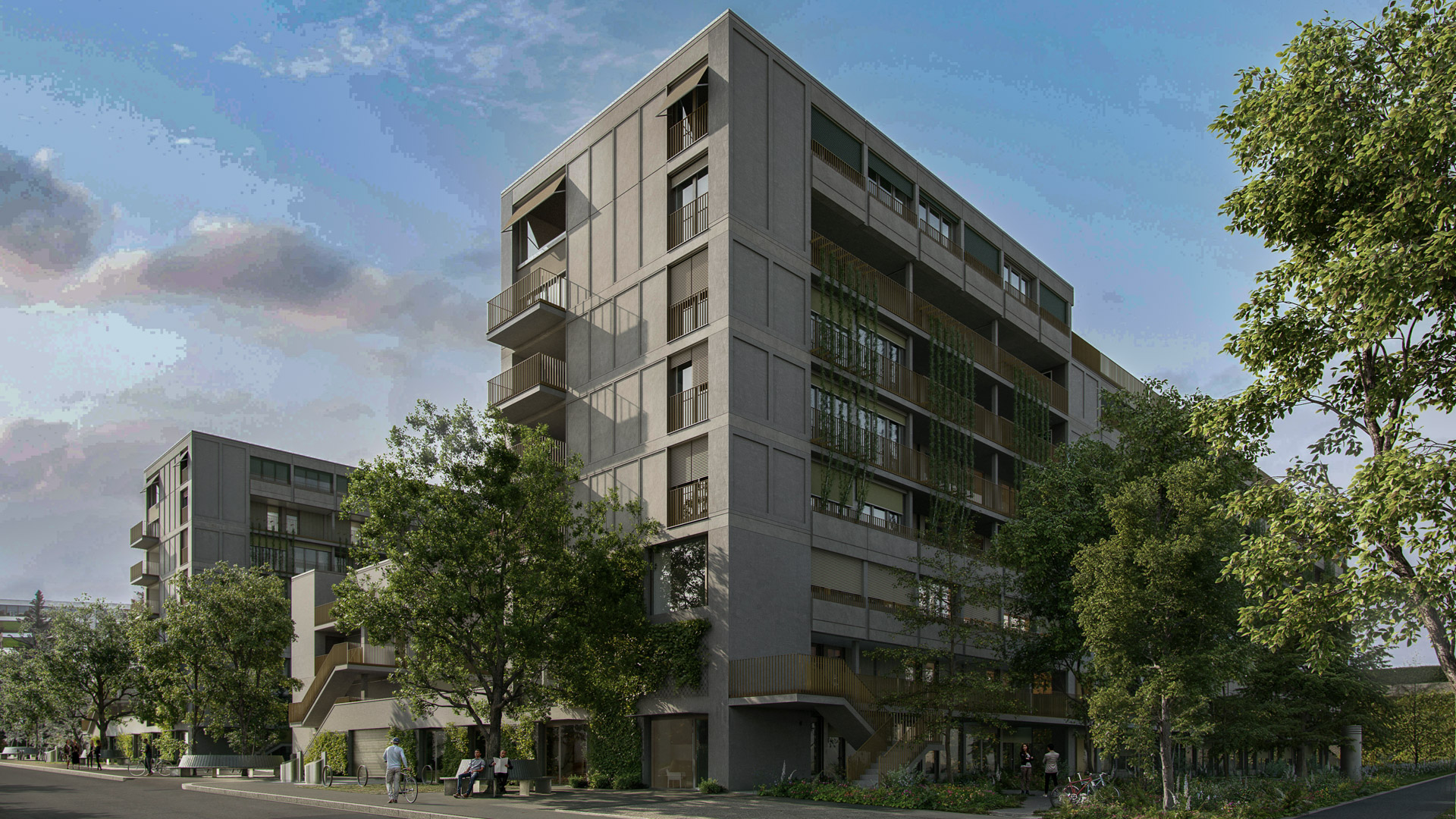 Das neue Wohnquartier umfasst vier Gebäudeeinheiten mit insgesamt 226 Wohnungen in den Grössen von 1.5 bis 4.5 Zimmern. Die Ausbau- sowie Materialisierungsstandards sind überdurchschnittlich und überraschen mit zahlreichen charmanten Details. Ebenfalls bemerkenswert: Die Übergärten bieten eine Vielfalt von Wohnformen, die ihresgleichen sucht.