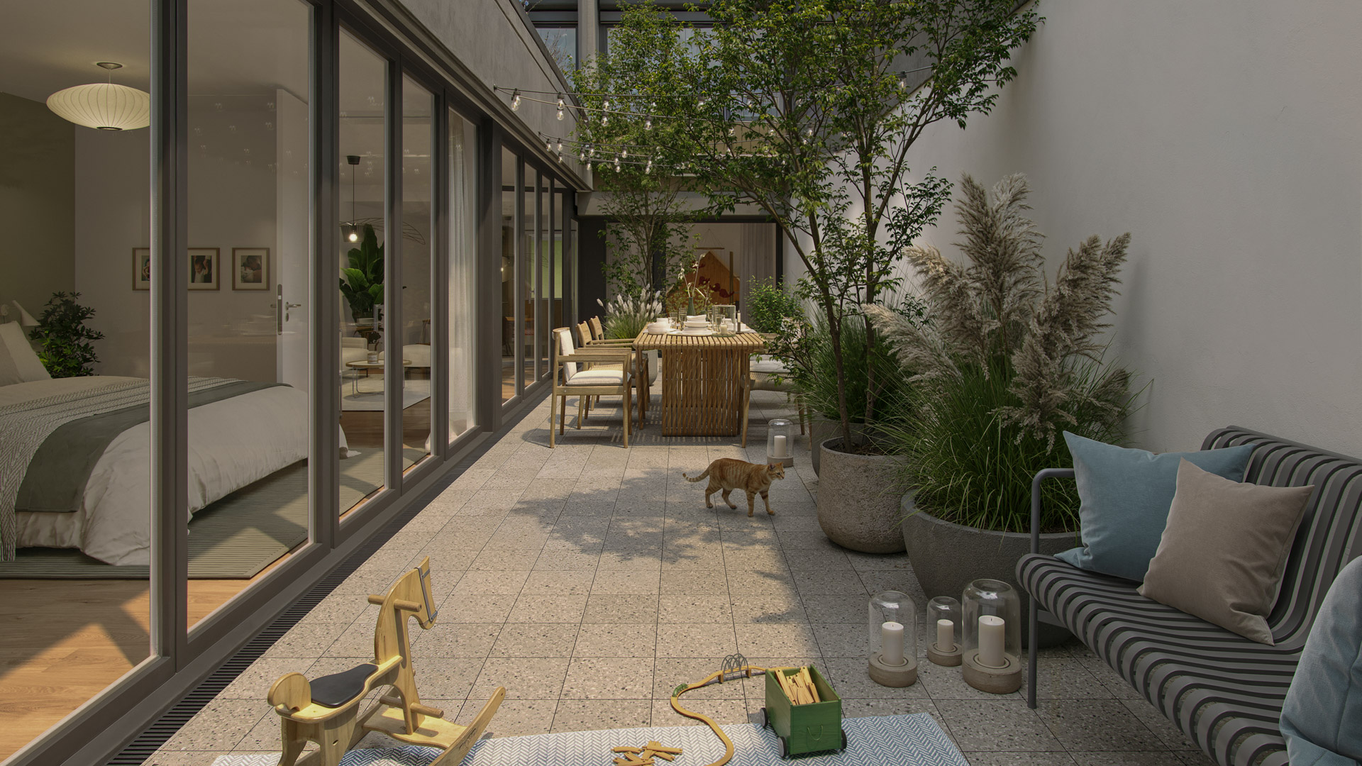 Die Übergärten sind ein inklusiver Ort, der die Wohnbedürfnisse von Menschen jeden Alters und in den unterschiedlichsten Lebensphasen und ‑situationen bedient. Entsprechend vielfältig präsentieren sich die Wohnwelten im neuen Wohnquartier: vom Wohnen auf einer Etage oder über mehrere Geschosse bis hin zum Zuhause mit grosszügigen Aussenräumen wie Patio, Terrasse, Sitzplatz oder Loggia. Das Angebot reicht von kompakten Studios bis zu weiträumigen Wohnoasen – mit passenden Wohnungstypen, in denen sich Jung und Alt, Singles und Paare sowie Familien rundum wohlfühlen.